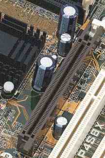 许多品牌主板在CPU槽附近都使用了3300微法左右的多个大容量电解电容器附加贴片电容的设计,以充分保证CPU工作时电压和电流的稳定性。